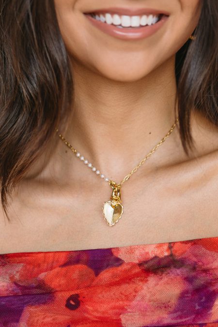 $33.00Details Scarf necklaceGold plated chain woven with the scarf fabricDangling charms vary per colorTies in back (no clasp)Rust color has charms of: cross, sun, heart, starIvory color has charms of: all heartsBlue color has charms of: suns, stars, heart, center round medallionMeasures 26 inches